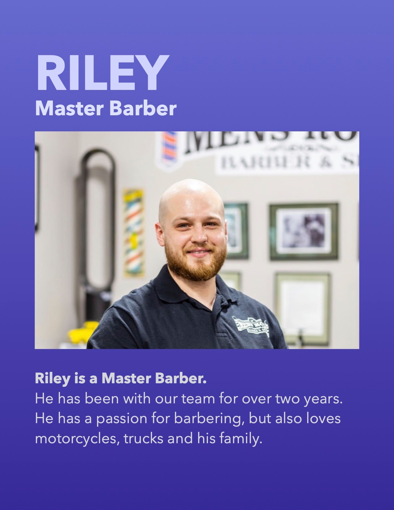 Riley is a Master Barber. He has been with our team for over two years. He has a passion for barbering, but also loves motorcycles, trucks and his family.