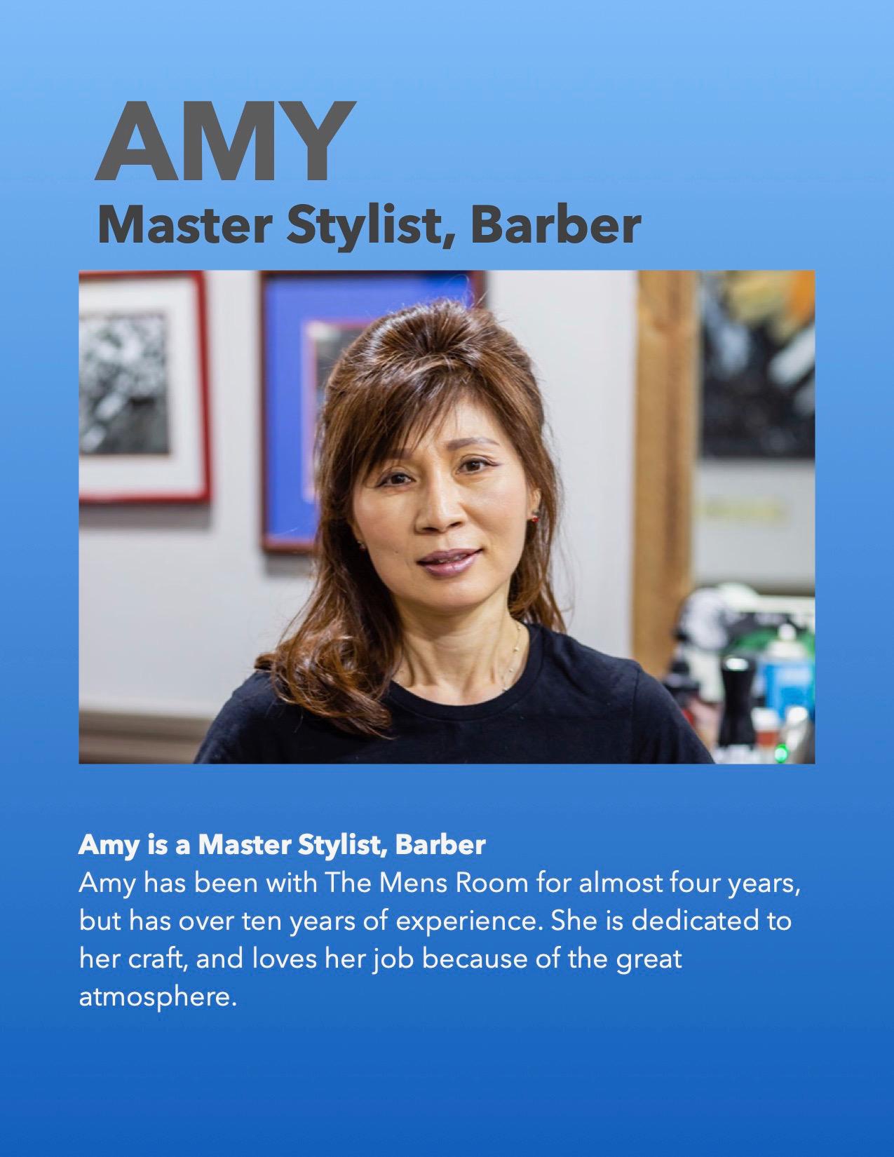 Amy is a Master Stylist, Barber. Amy has been with The Mens Room for almost four years, but has over ten years of experience. She is dedicated to her craft, and loves her job because of the great atmosphere.