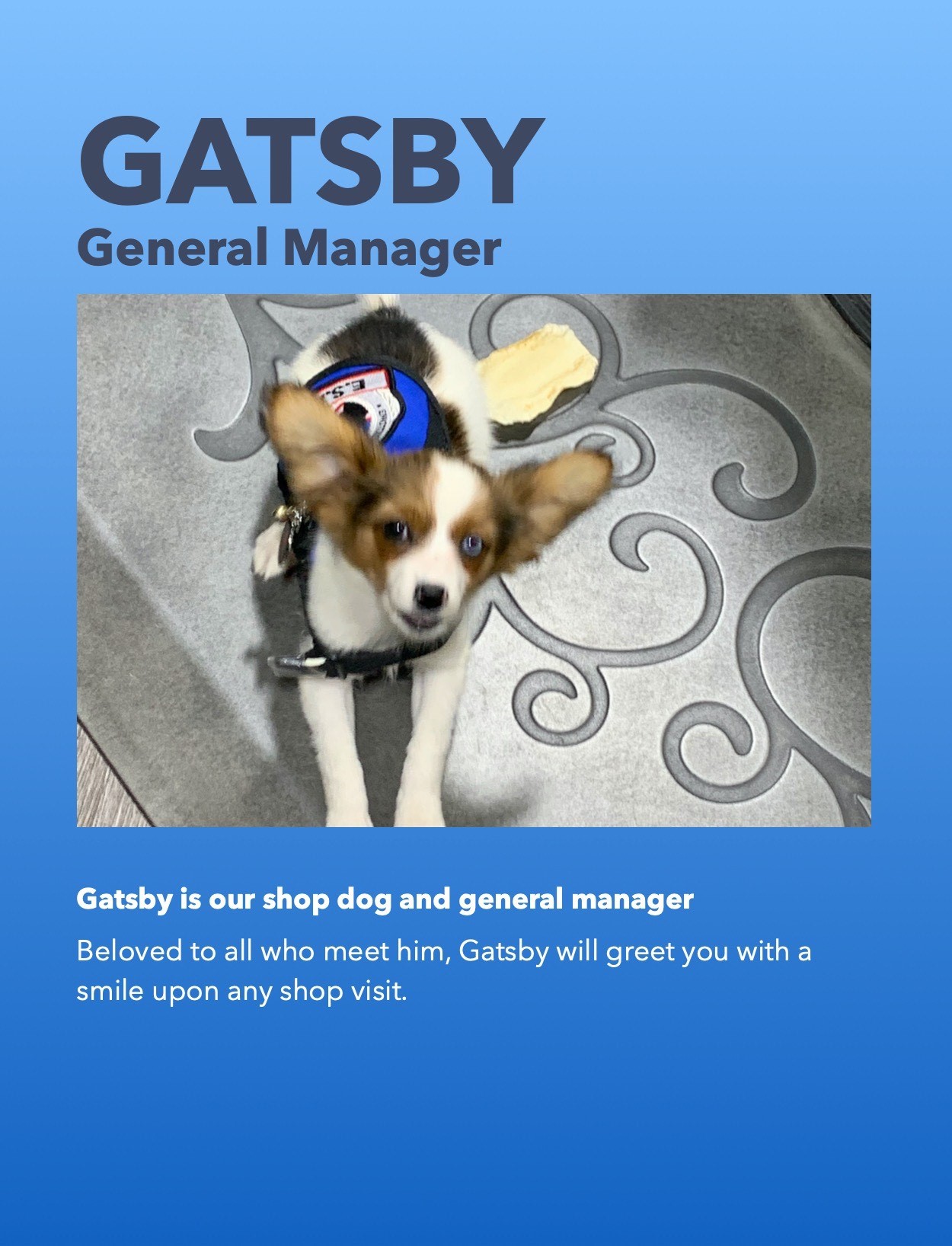Beloved to all who meet him, Gatsby will greet you with a smile upon any shop visit.
