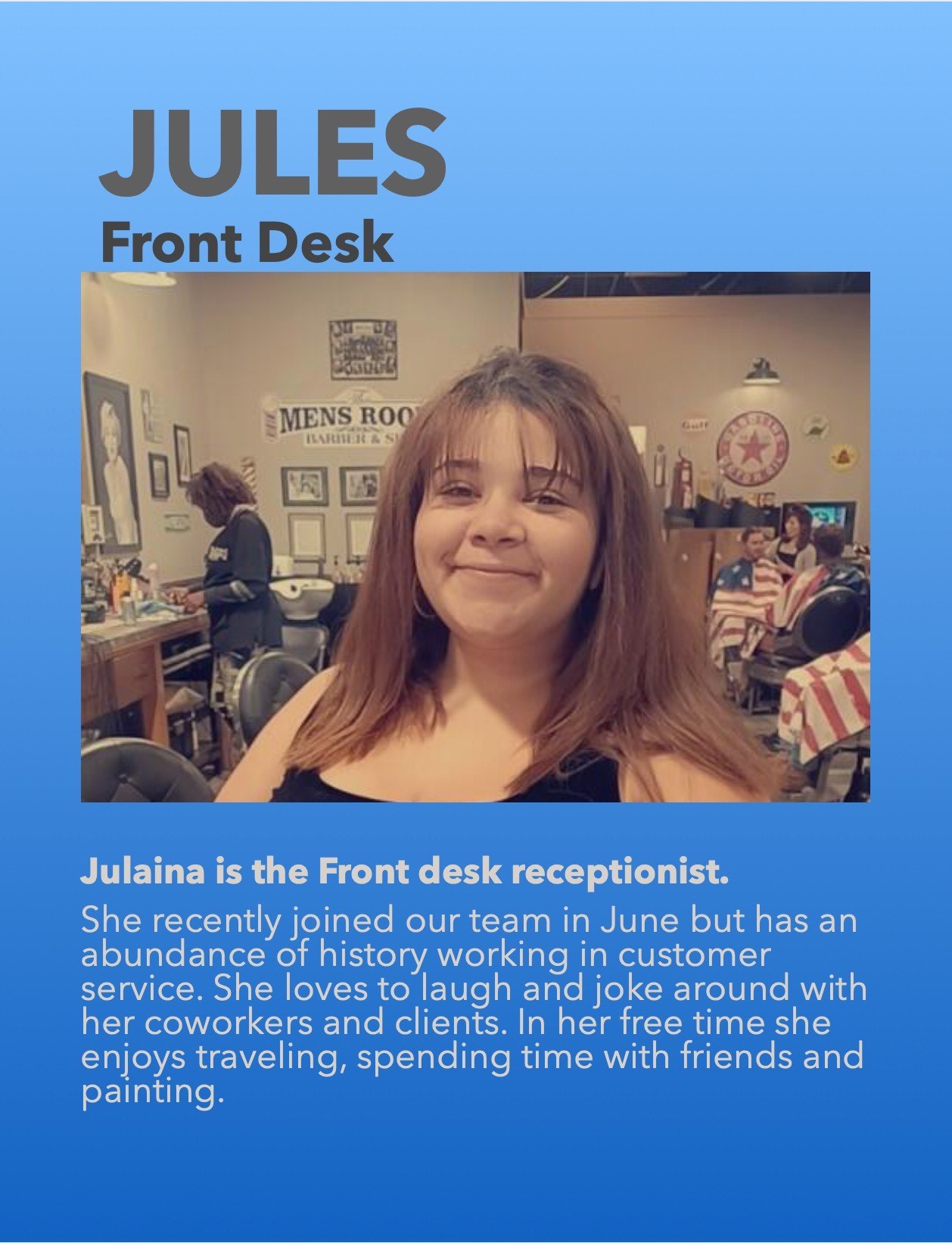 She has been doing hair since 2016. She is great at designs and fades. She loves barbering and is the mother of 3.